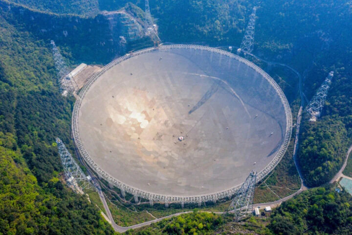 2021年3月31日拍摄的“中国天眼”一景(维护保养期间拍摄,无人机照片)