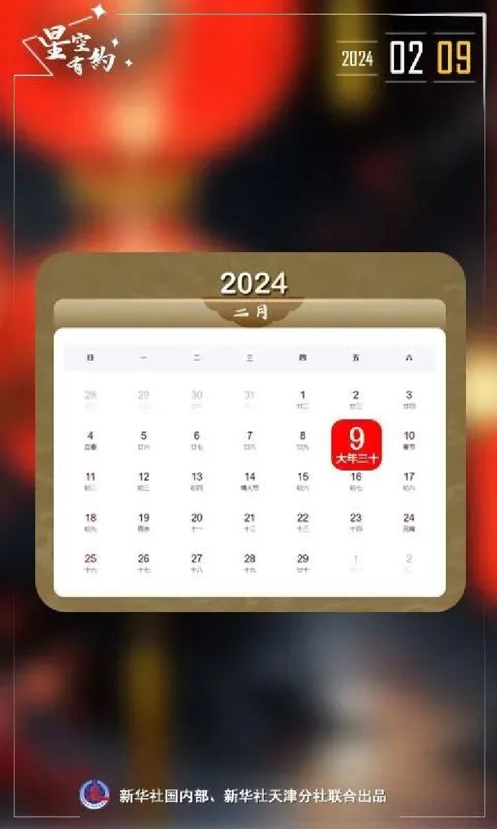 近日一则“未来5年都没有大年三十”的消息引发公众关注。消息称,2024年2月9日是近年来最后一个大年三十,因为从2025年起至2029年都没有大年三十,只有大年二十九。天文科普专家表示,大年三十时有时无是正常历法现象,系农历大小月所致。 [详情]