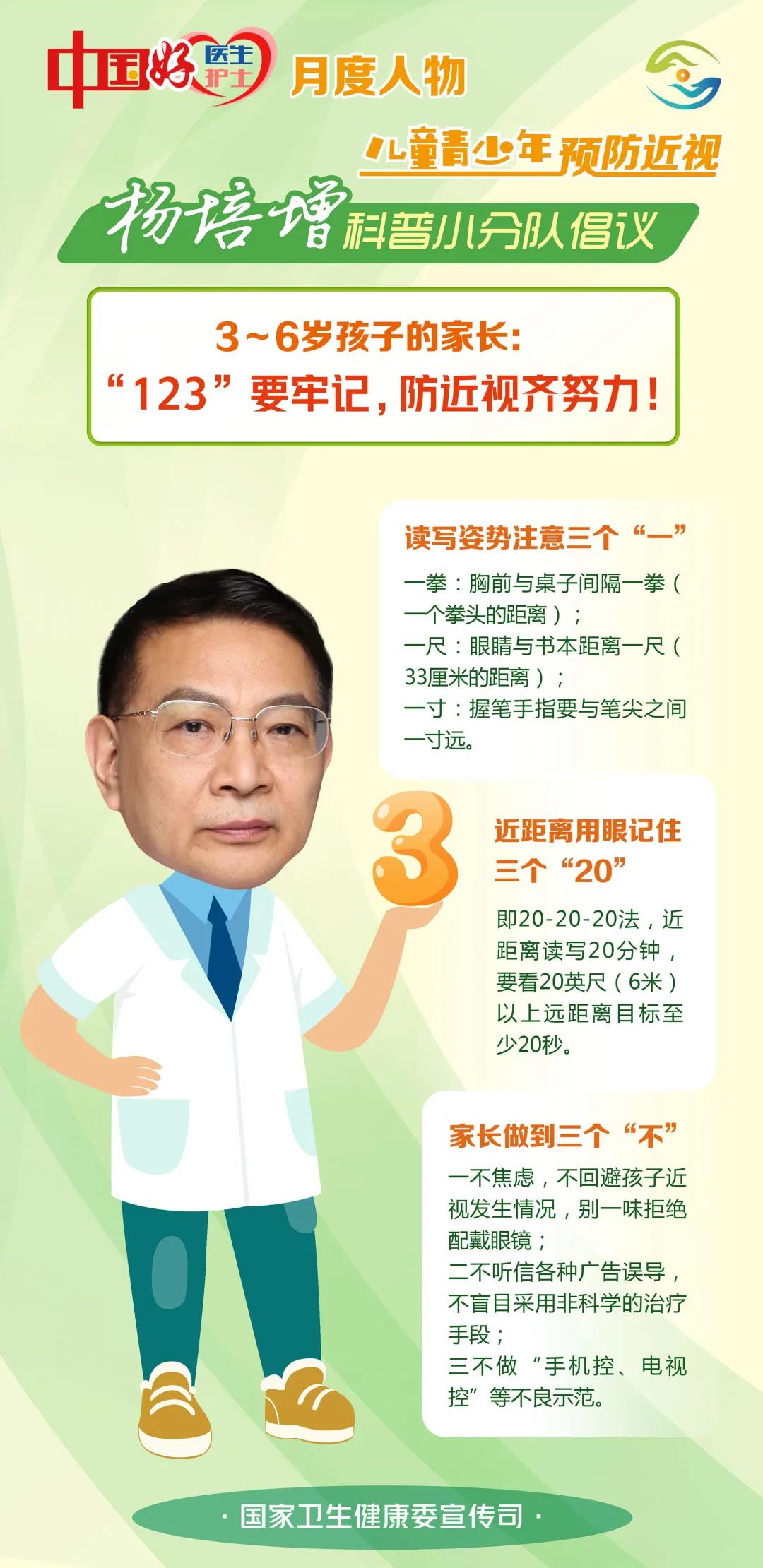 今年,“中国好医生、中国好护士”月度人物儿童青少年预防近视科普小分队向每一位3~6岁孩子的家长倡议: