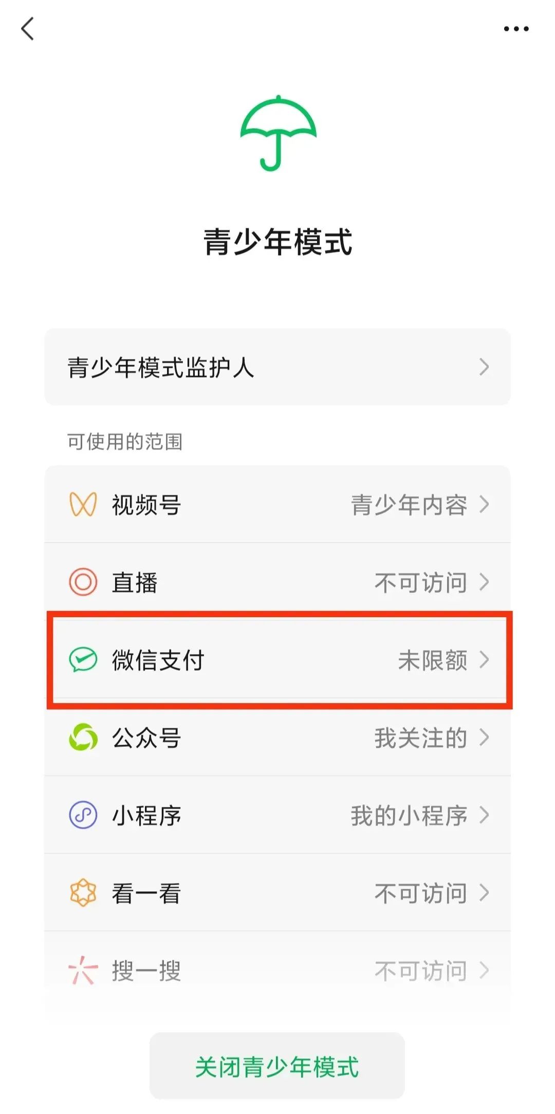 微信正式推出青少年模式支付限额功能。