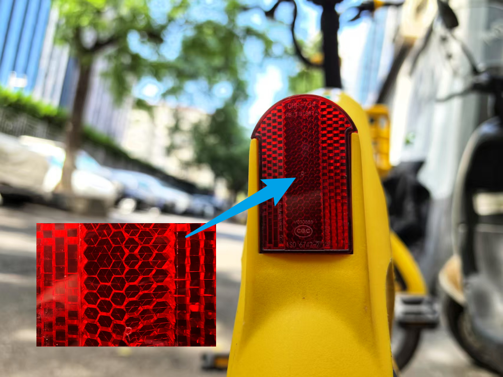 若在偶镜上再加一面镜子使三面镜垂直,就成为一个角反射器,它由三对偶镜组成,无论从何角度投射光线,经二、三次反射的光都与入射光平行。角反射器用途广泛,像自行车尾灯就由众多角反射器组成,不过实际尾灯角镜之间并非严格垂直,这样能有部分反射光散开,便于司机看见。