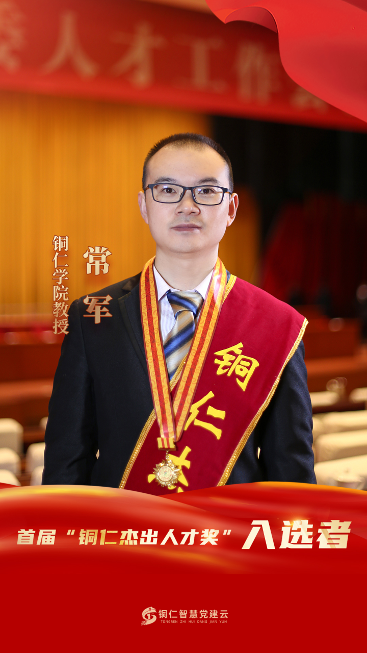 常军,男,仡佬族,1985年8月生,贵州石阡人,博士,教授,铜仁学院教师,首批硕士研究生导师,省管专家,首届"铜仁杰出人才奖"入选者。从2016年7月作为高层次人才引进到铜仁学院至今,一直致力于稀贵金属提取、锰资源高效利用、冶金过程强化、节能降耗等方面的科研和教学工作。